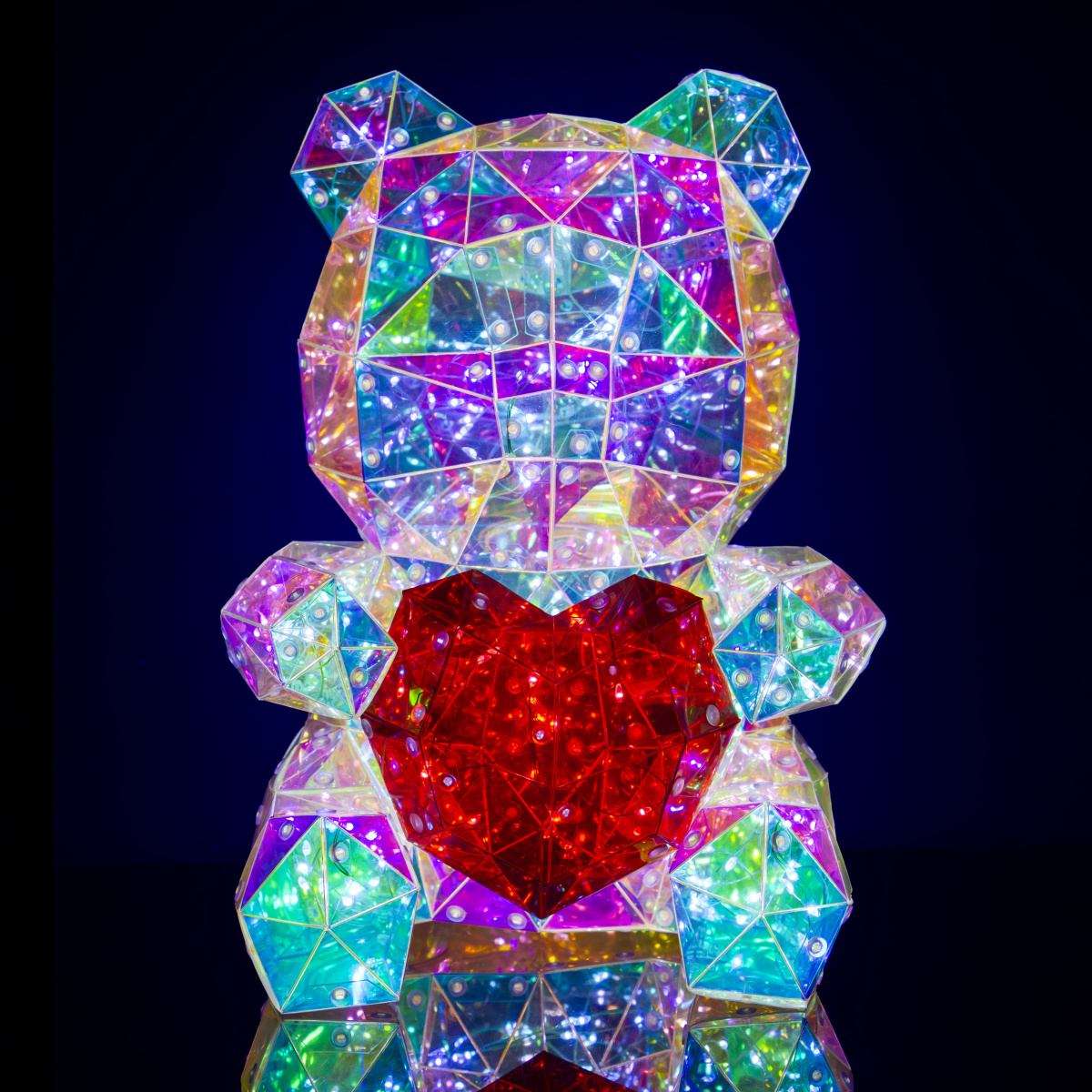 Velký plastový medvěd se srdcem a 200 LED světýlky přináší do vašeho domova sváteční a hravou atmosféru. Barevné multicolor osvětlení vytváří kouzelné světelné efekty a USB napájení umožňuje snadné zapojení kdekoliv.