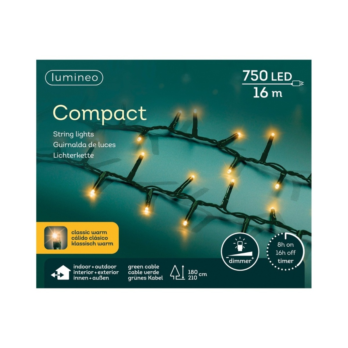 Řetěz svítící venkovní Compact 750LED bílá s časovačem, stmívačem zelený 16m