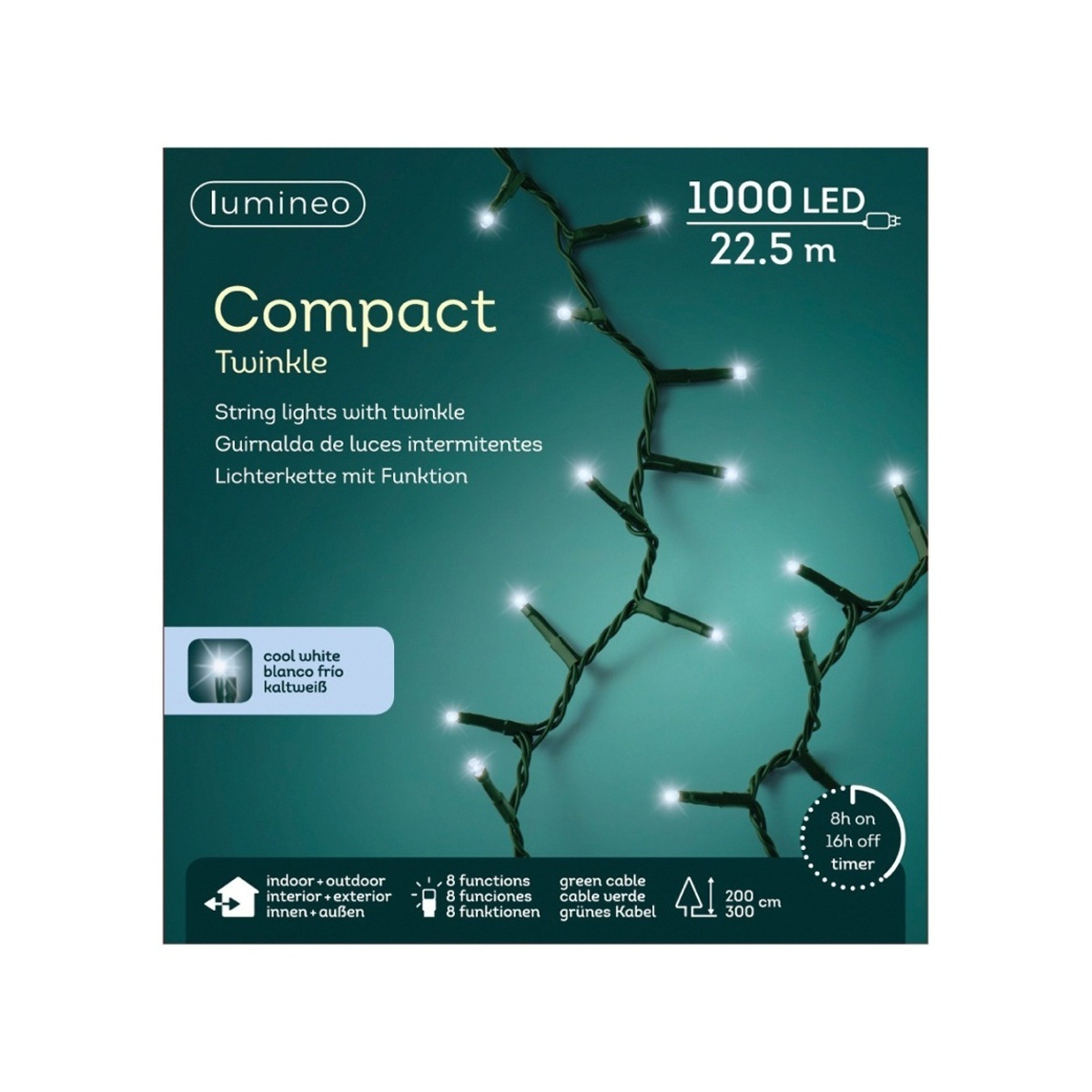 Řetěz svítící venkovní Compact 1000LED st.bílá s časovačem, 8 funkcí zelený 22,5m