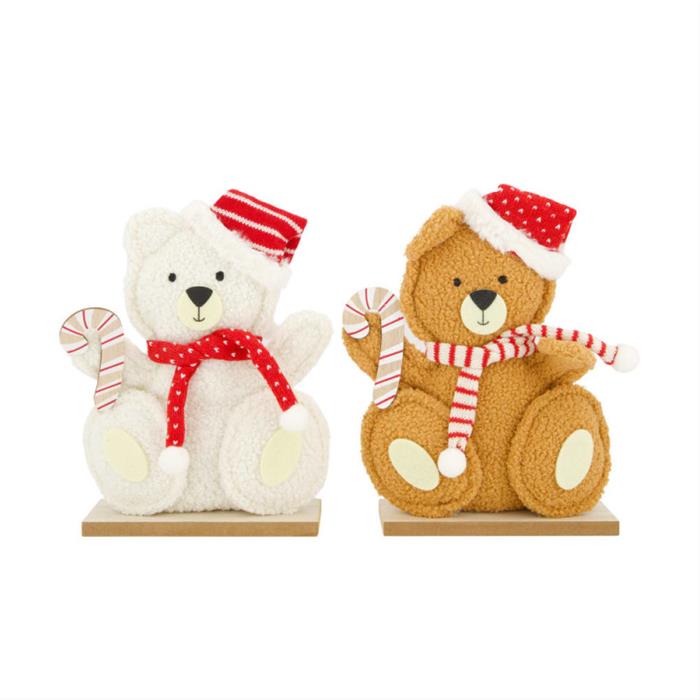 Roztomilý plyšový medvěd, který vám vykouzlí úsměv na tváři! Medvěd je oblečený do stylové čepice a šály, což mu dodává hravý a zároveň útulný vzhled. Sedí na elegantním dřevěném podstavci, který podtrhuje jeho kouzlo a dělá z něj skvělý dekorativní kousek do vašeho domova či dětského pokoje. Dekorace v mixu provedení. Pokud si přejete konkrétní variantu, napište ji do poznámky, pokusíme se vyhovět. V případě nedostupnosti bude odeslán náhodný kus.