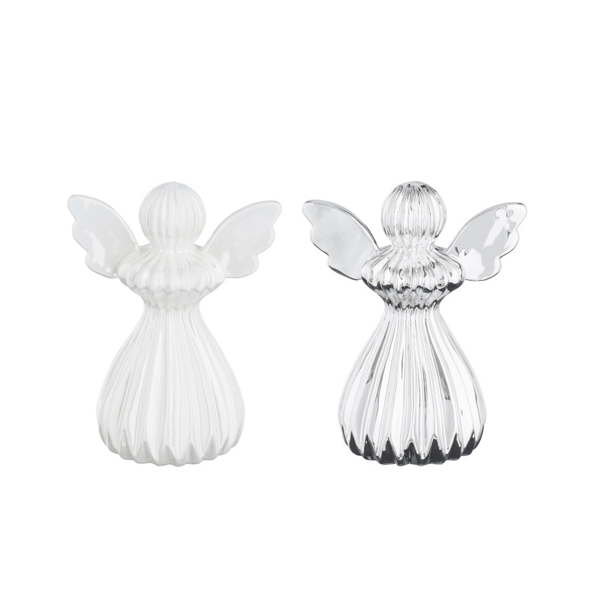 Anděl keramický bílý/stříbrný mix 17,5cm