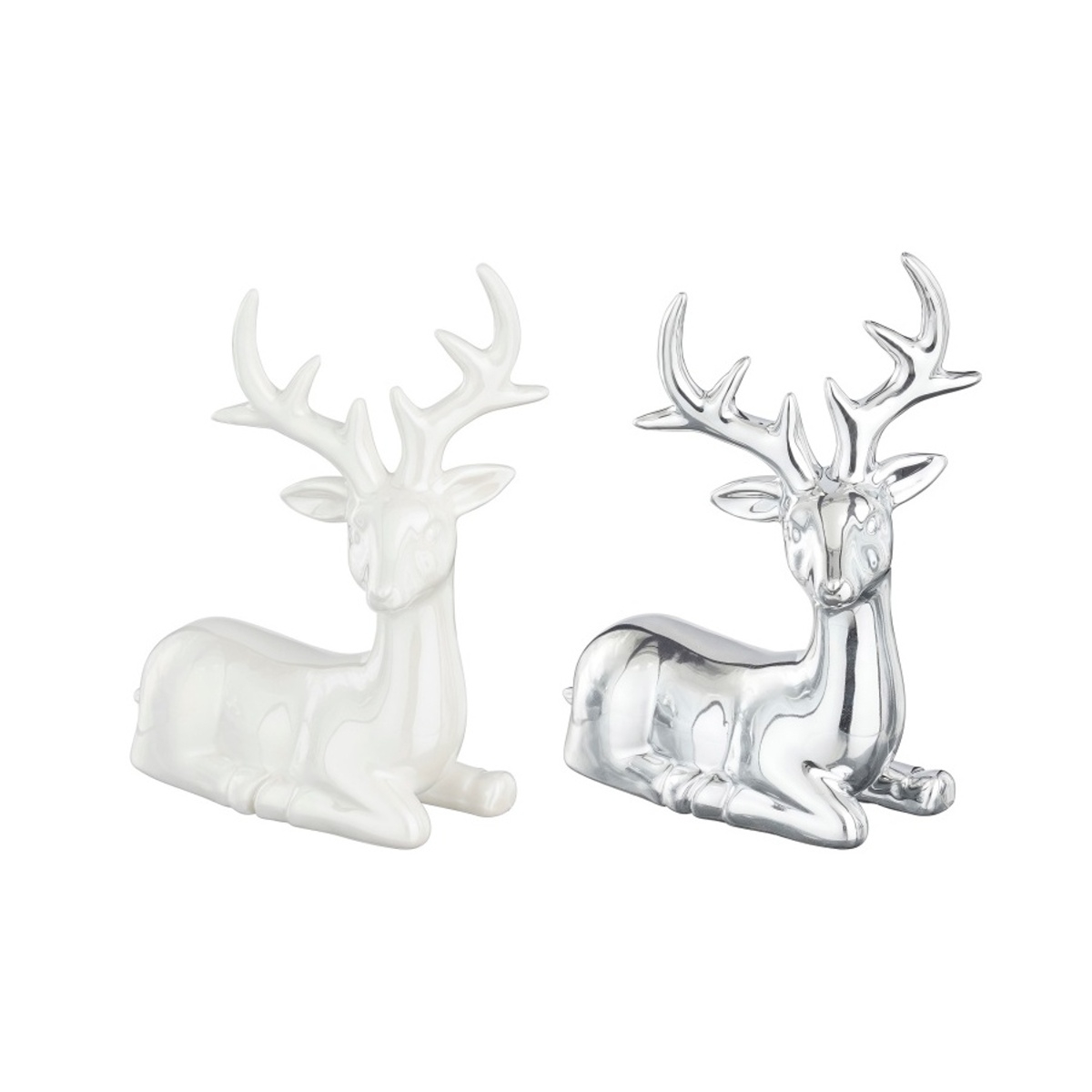 Jelen ležící keramický bílý/stříbrný mix 18cm