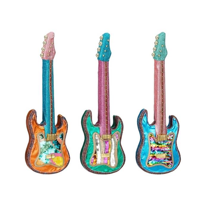Přineste originální dárek pro hudebního nadšence, nebo ji použijte jako originální doplněk vašeho interiéru. Kytara je vyrobena z hebkého sametu a zdobená třpytivými glitry, které ji dělají opravdu výjimečnou. Kytara je v mixu provedení. Pokud si přejete konkrétní variantu, napište ji do poznámky, pokusíme se vyhovět. V případě nedostupnosti bude odeslán náhodný kus.