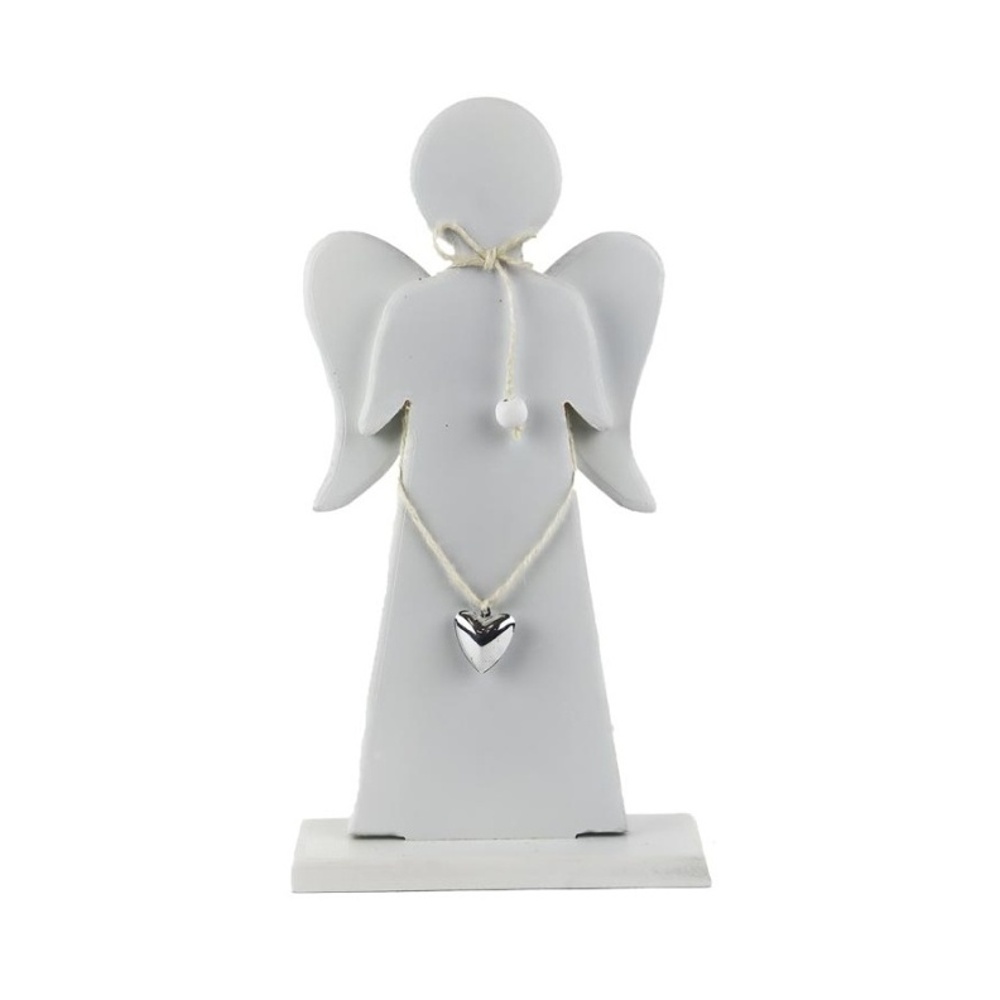 Elegantní a něžná dřevěná dekorace anděla stojícího na podstavci se srdcem, které je symbolem lásky, ochrany a klidu. Celý anděl je v čistě bílém provedení, které dodává dekoraci jednoduchost a nadčasovost.