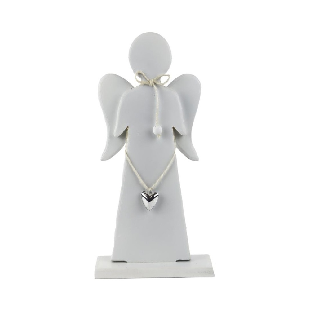 Elegantní a něžná dřevěná dekorace anděla stojícího na podstavci se srdcem, které je symbolem lásky, ochrany a klidu. Celý anděl je v čistě bílém provedení, které dodává dekoraci jednoduchost a nadčasovost.