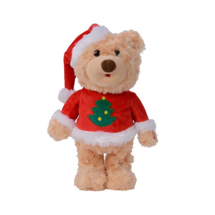 Medvěd stojící s čepicí a svetrem plyšový 30cm