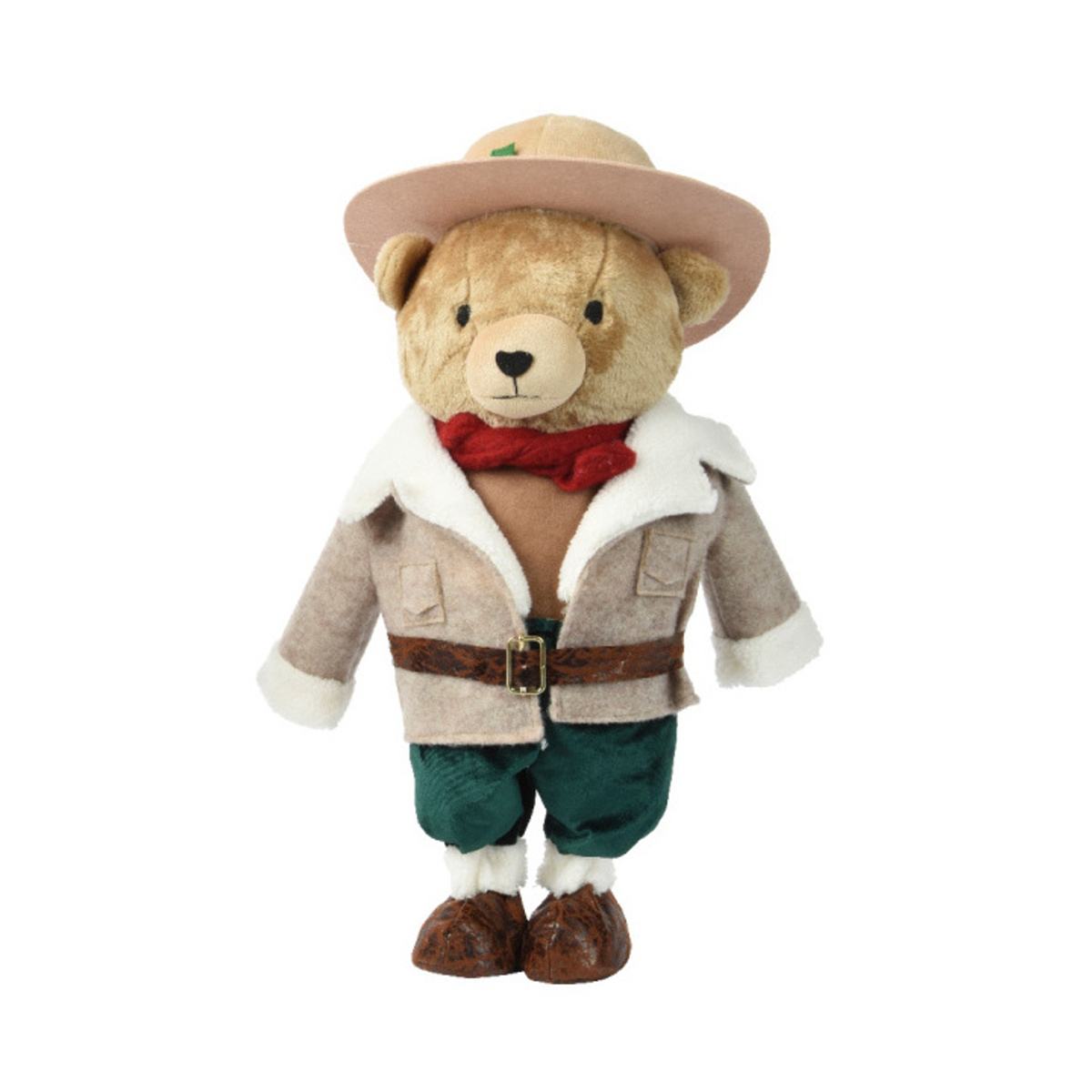 Medvěd stojící s kloboukem a kabátem plyšový 45cm