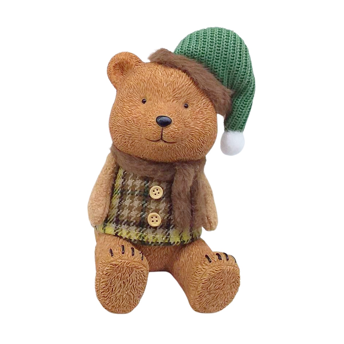 Oživte svůj interiér s tímto sedícím polyresinovým medvědem doplněným o pletenou čepici. Postavička o výšce 20 cm působí útulně a svátečně, a je vhodná jako zimní či vánoční dekorace na stůl, poličku nebo komodu. Díky pevnému polyresinovému materiálu je odolný a snadno se kombinuje s dalšími zimními dekoracemi.