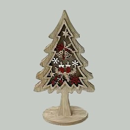 Strom dřevěný s vánočním motivem 25cm