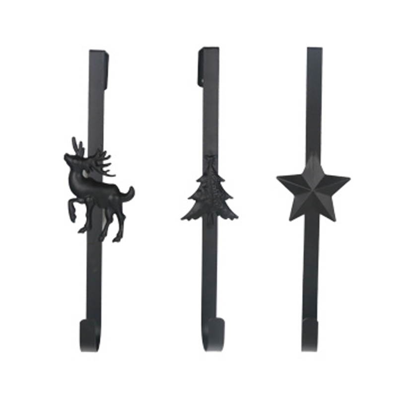Vánoční kovový hák na dveře s hvězdou, stromem nebo jelenem, černý, 29 cm