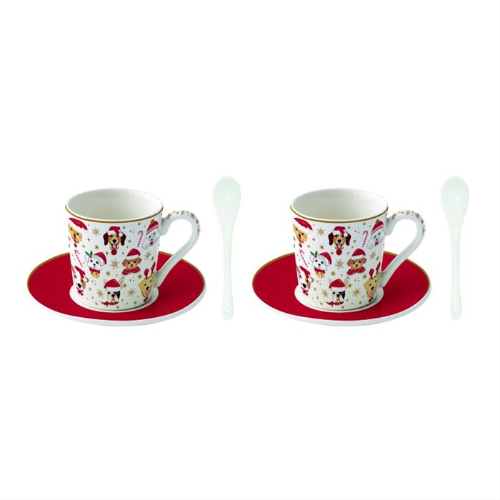 Porcelánový šálek a podšálek se lžičkou CHRISTMAS FRIENDS DOGS 2ks