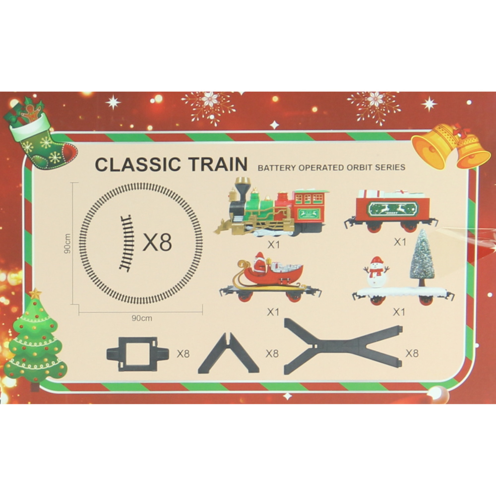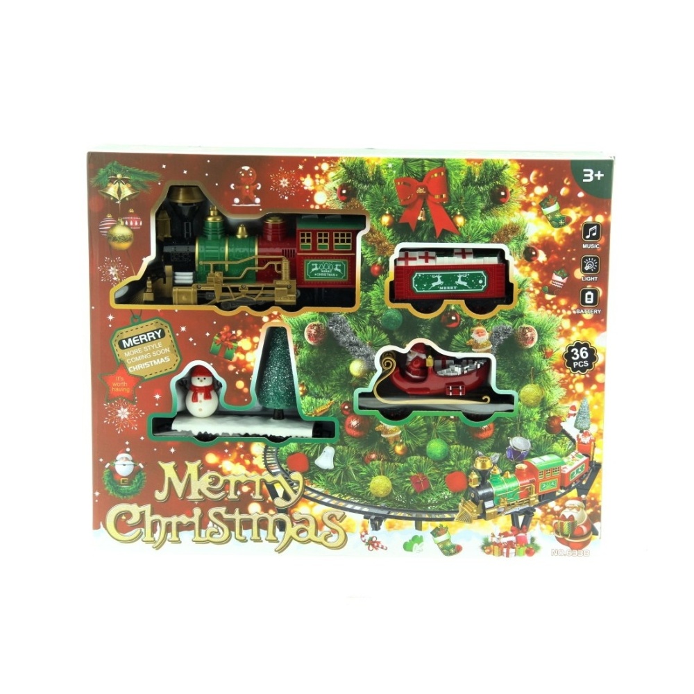 Sada svítícího a hrajícího vláčku s kolejemi. Sad obsahuje 36 dílů a nabízí rozsáhlé možnosti her a kreativního stavění. Vlak je poháněn bateriemi, při jízdě svítí a hraje, koleje lze sestavit do různých tvarů a délek podle fantazie dětí. Sada obsahuje praktické nožičky a tak je možné vláček umístit okolo stromku.