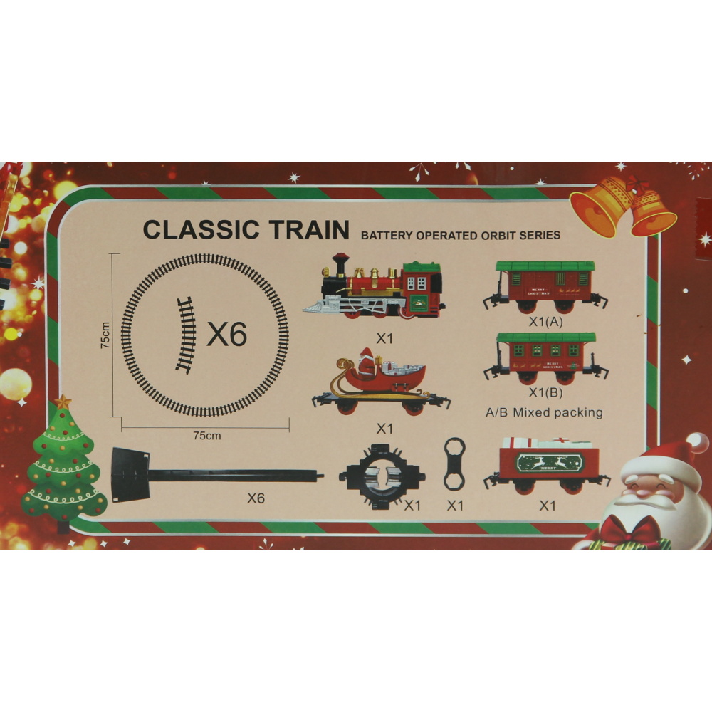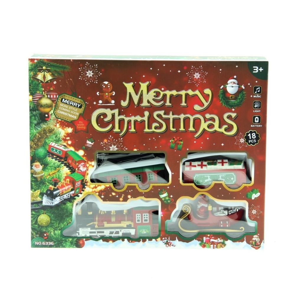 Sada svítícího a hrajícího vláčku s kolejemi. Sada obsahuje 18 dílů a nabízí hodiny zábavy pro děti. Vlak je poháněn bateriemi, svítí a hraje při jízdě po přiložených kolejích, které lze snadno sestavit. Sada obsahuje praktický držák a tak je možné vláček nainstalovat i na vánoční stromeček.
