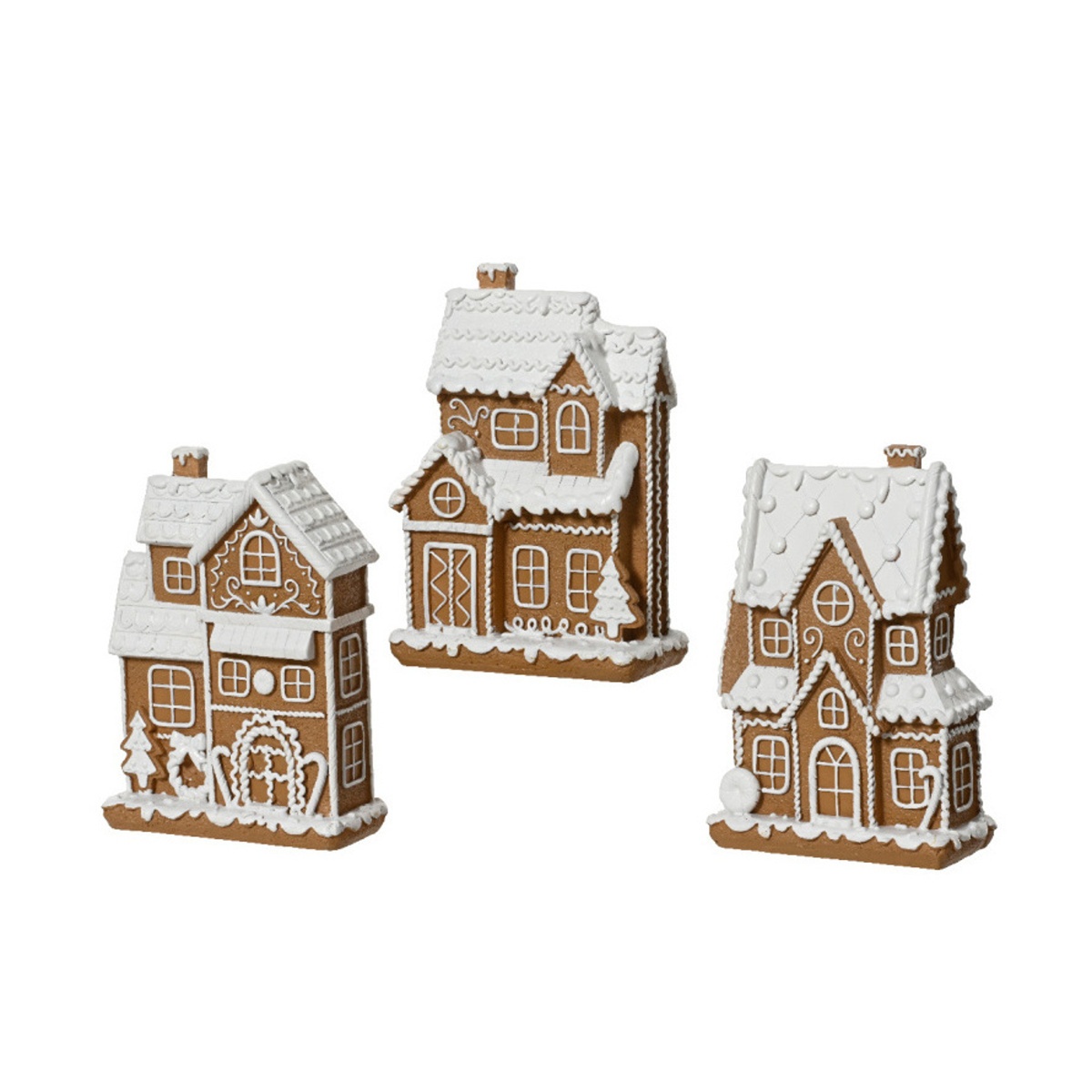 Perníkový domeček z polyresinu bílo-hnědý mix 14cm
