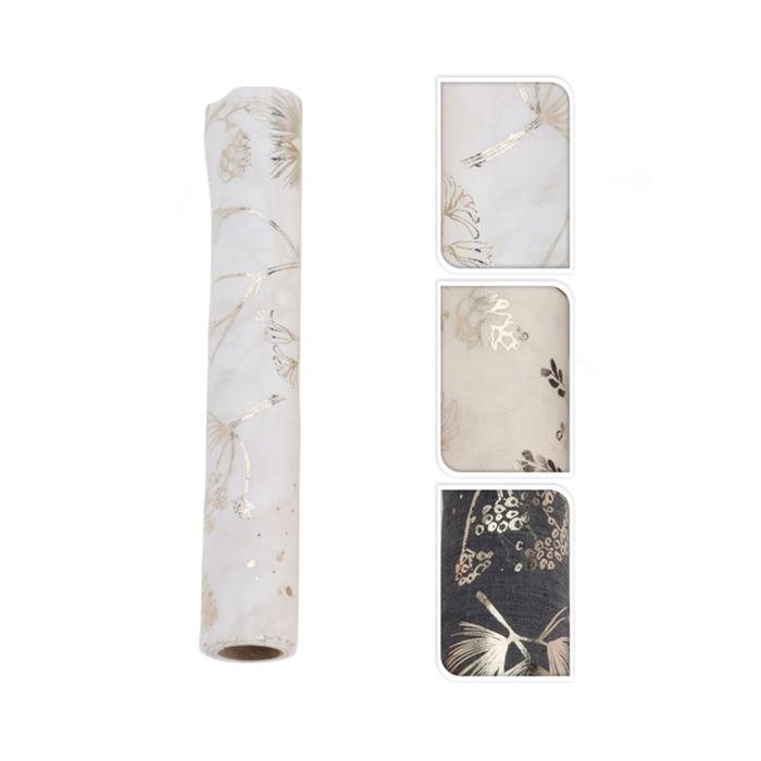 Elegantní běhoun s jemným květinovým a travním vzorem, který rozzáří váš stůl a dodá mu svěží přírodní nádech. Díky extra délce 300 cm je ideální i pro velké stoly a působí jako krásný základ pro slavnostní i každodenní stolování. Běhoun v mixu provedení. Pokud si přejete konkrétní variantu, napište ji do poznámky, pokusíme se vyhovět. V případě nedostupnosti bude odeslán náhodný kus.