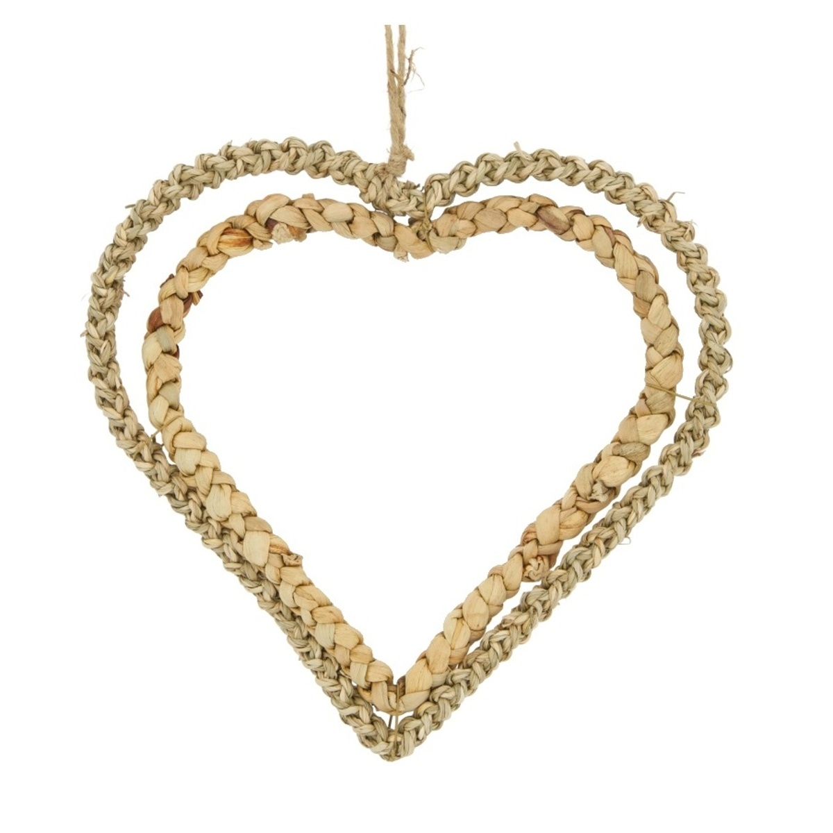 Přírodní závěsné srdce z mořské trávy o velikosti 28 cm je stylovou dekorací do interiéru. Skvěle se hodí na dveře, zeď, okno nebo jako součást větších dekorativních aranžmá. Přírodní materiál dodává srdci rustikální a útulný vzhled, který vnese do vašeho domova pocit klidu a harmonie.
