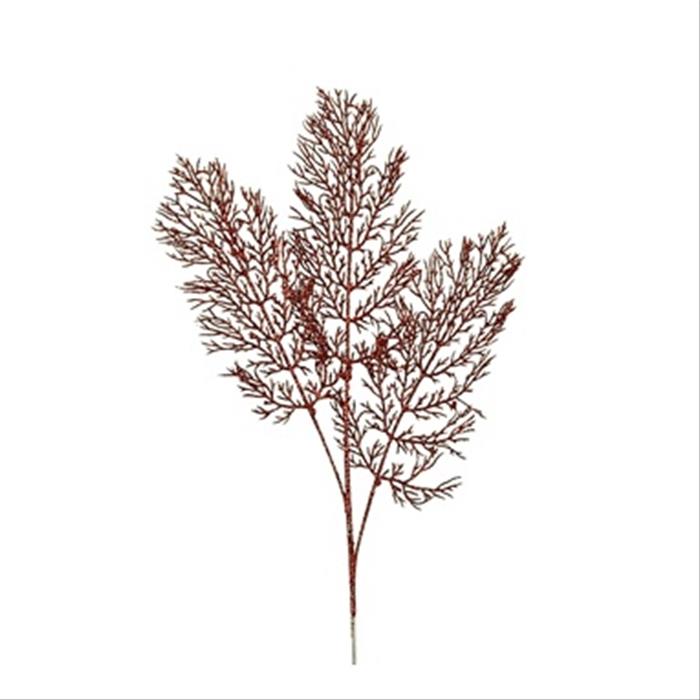 Výrazná umělá kapradina se třemi listy v sytě červené barvě a zdobením z jemných glitrů je ideální pro sváteční aranžmá a vánoční výzdobu. S délkou 79 cm vynikne ve váze, věnci, vánočním stromečku nebo jako součást slavnostního stolu.