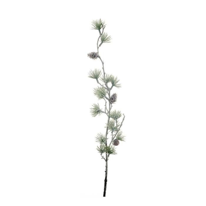 Větev modřínová s jehličím a šiškami umělá kroucená zasněžená 50cm