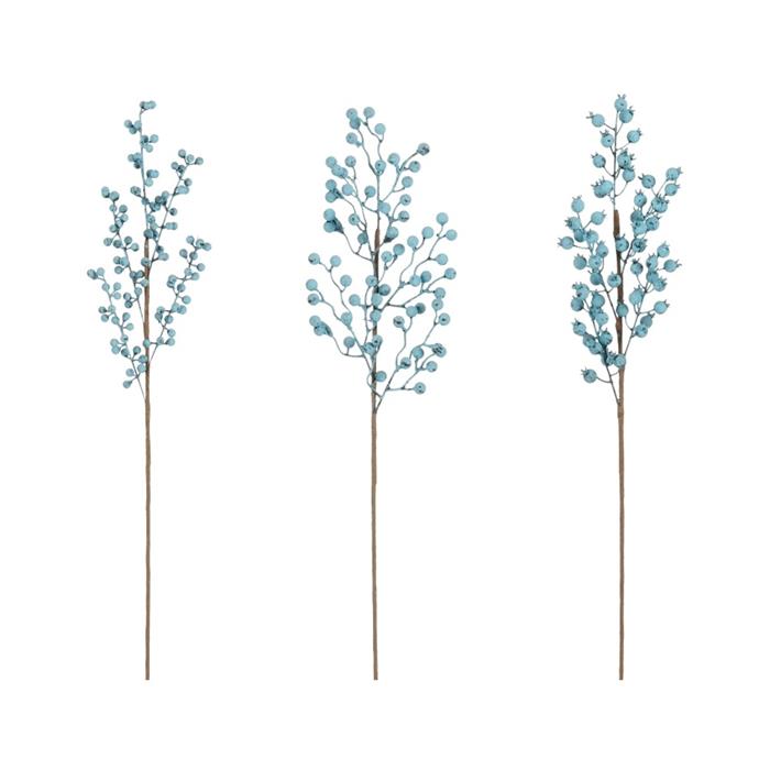 Dekorační větev s umělými bobulemi v mixu tvarů. Větev je ideální pro celoroční aranžmá i sezónní dekorace, protože se snadno kombinuje s dalšími přírodními i umělými prvky. Větev v mixu provedení. Pokud si přejete konkrétní variantu, napište ji do poznámky, pokusíme se vyhovět. V případě nedostupnosti bude odeslán náhodný kus.