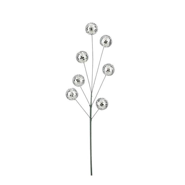 Větev umělá se zrcadlovými koulemi stříbrná 60cm