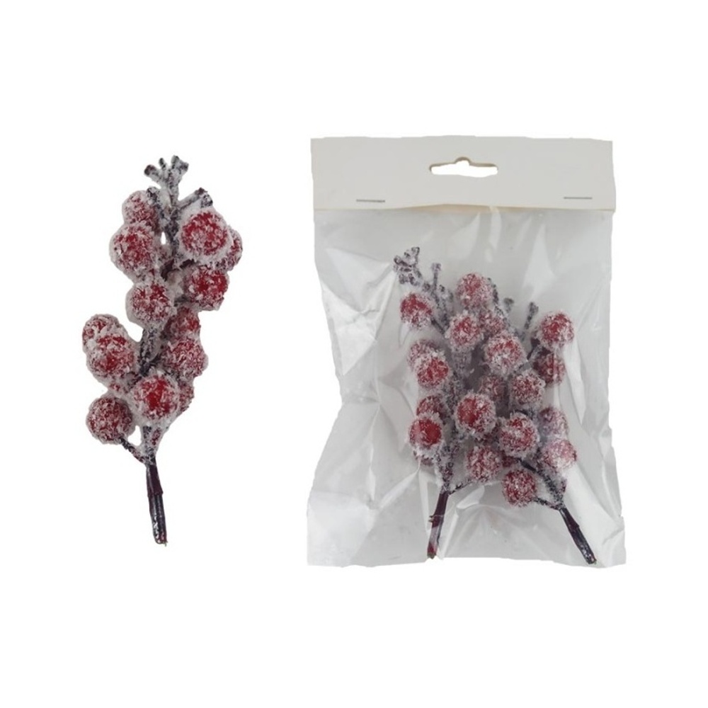 Přízdoba větev se zasněženými bobulemi umělá červená 2ks