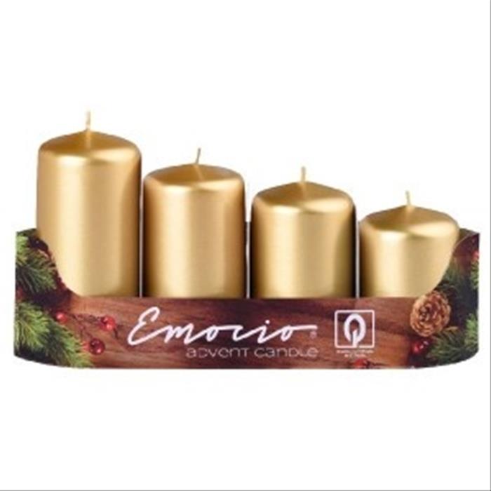 Elegantní stupňovité svíčky s metalickým efektem jsou ideálním doplňkem pro sváteční stolování a vánoční dekorace. Jejich stupňovitý tvar zajišťuje stejnoměrné odhořívání svíček v jednotivých adventních týdnech. MEtaliský povrch odráží světlo a přináší třpyt do dekorace. Svíčky na adventním věnci slouží k odpočítávání čtyř týdnů adventu, znamenají světlo a duchovní spojení. Tyto válcové svíčky jsou vhodné nejen do adventních věnců a různých adventních dekorací, ale i do svícnů či jen tak na podložku. UPOZORNĚNÍ: Přihoření nenechávejte svíčku bez dozoru a vždy ji umístěte na nehořlavou podložku.