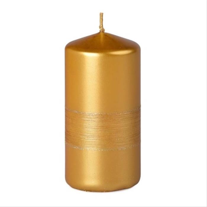 Dekorativní drápaná válcová svíčka ve zlaté barvě, výška 12 cm – výrazný prvek pro luxusní vánoční výzdobu