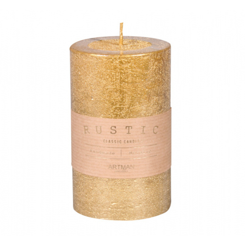 Svíčka válcová RUSTIC metalická zlatá 12cm