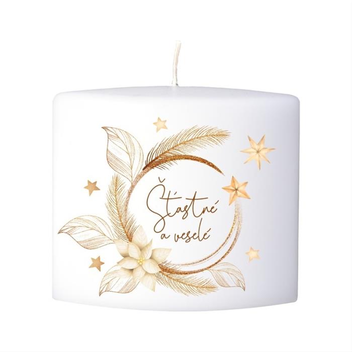 Parametry produktu Svíčka elipsa s kruhem a nápisem ŠŤASTNÉ A VESELÉ zlato-bílá 9,5cm