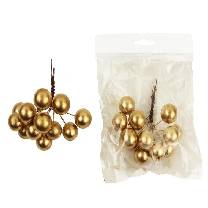 Koule plastová na drátku 24ks 1,5cm zlatá