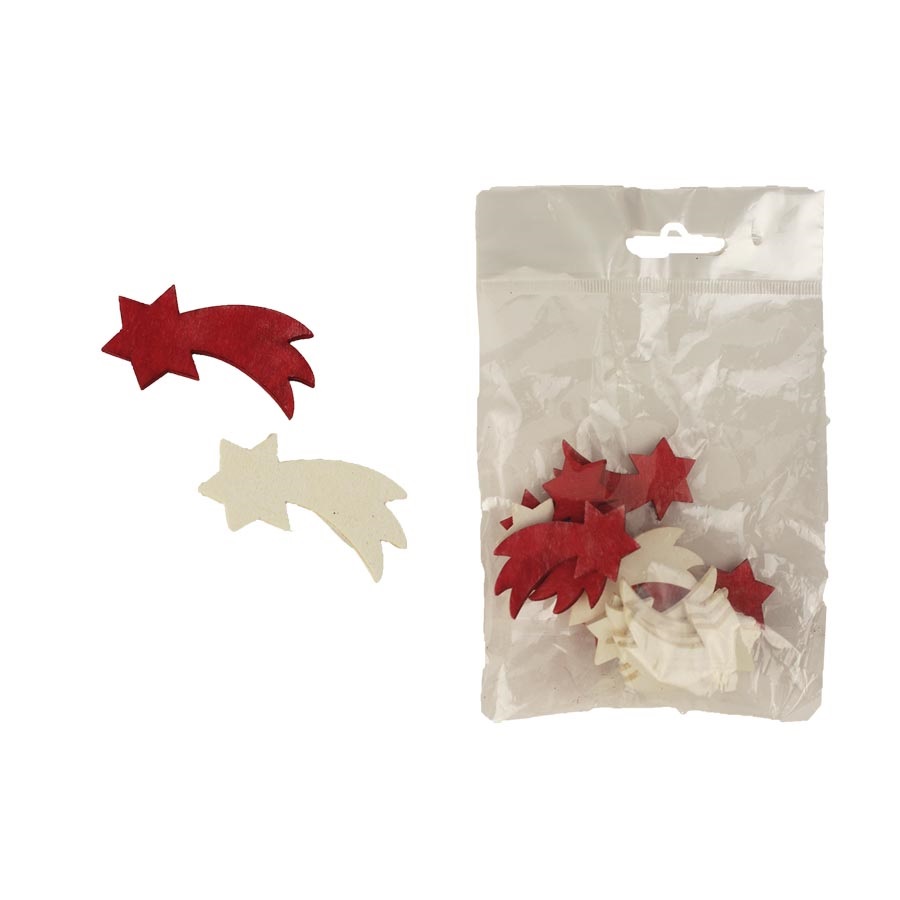 Přízdoba kometa dřevěná bílá/červená 4cm/12ks