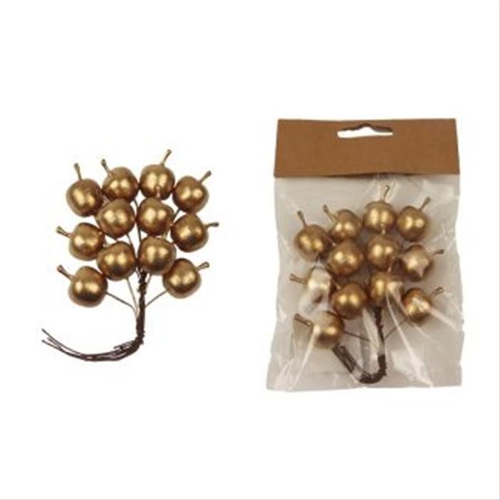 Sada 12 drobných zlatých umělých jablek na drátku je ideálním doplňkem pro vaše vánoční dekorace, věnce nebo květinová aranžmá. Díky pevné fixaci na drátku se snadno zapojují do různých výzdob a přidávají jim elegantní a slavnostní nádech. Skvělá přízdoba pro vytvoření originální a třpytivé sváteční atmosféry.