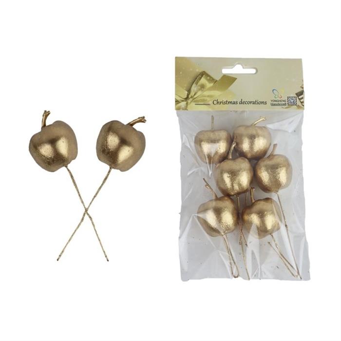 Jablko umělé na drátku zlaté 6ks