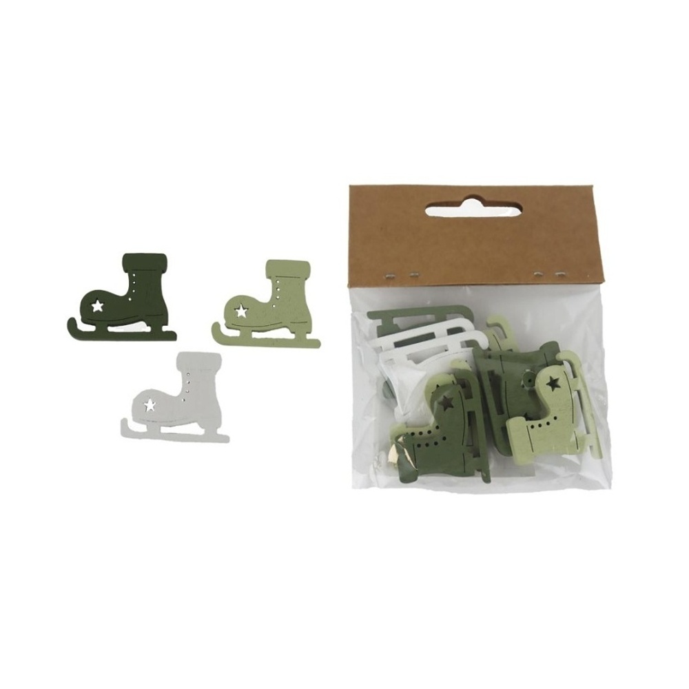Přízdoba brusle dřevěná s hvězdou bílá/zelená 9ks