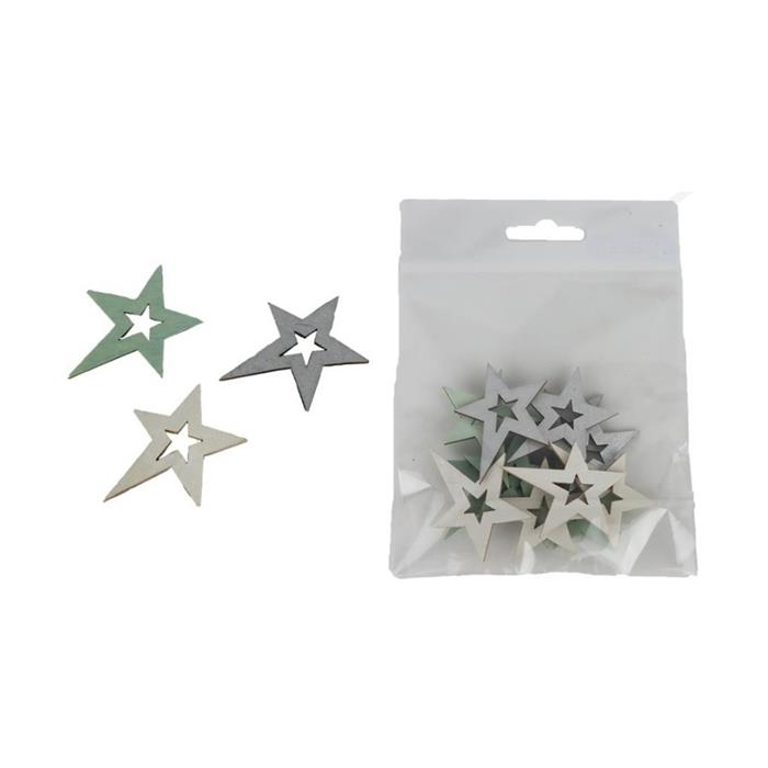 Přízdoba hvězda dřevěná mix barev 12ks