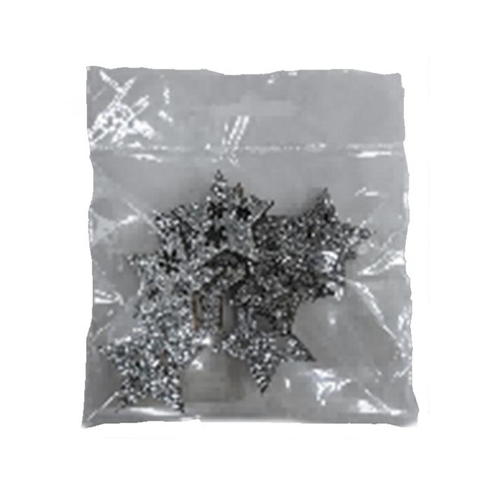 Přízdoba hvězda dřevěná s glitry stříbrná 12ks