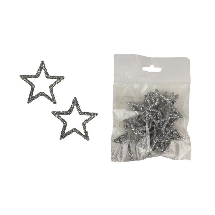 Přízdoba hvězda plastová s glitry stříbrná 12ks