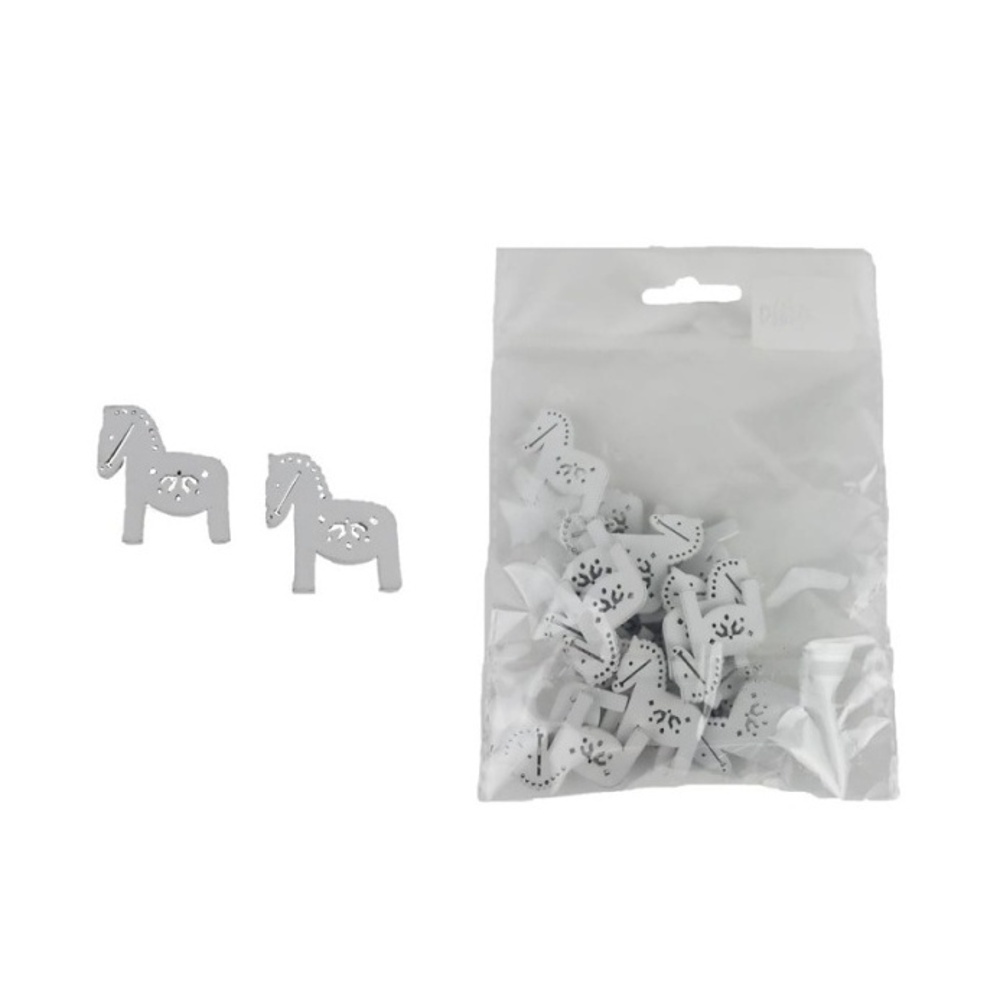 Přízdoba kůň dřevěný s ornamenty bílý 25ks