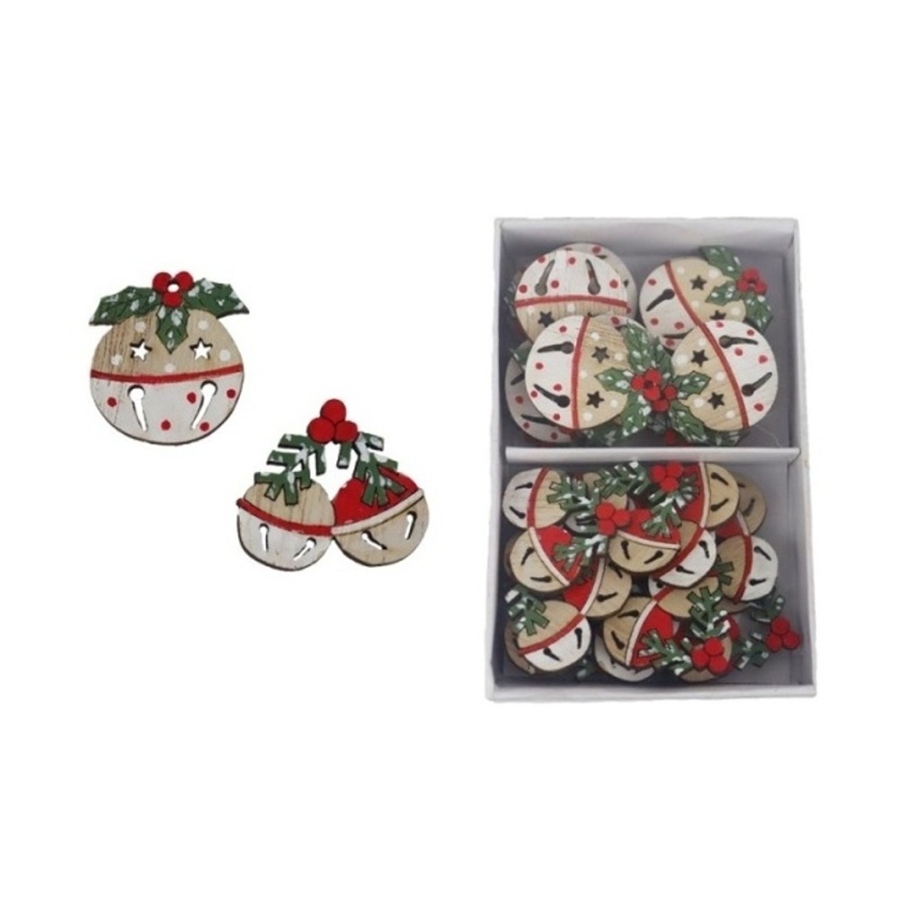 Přízdoba dřevěná rolnička s cesmínou/jehličím mix 3cm/24ks