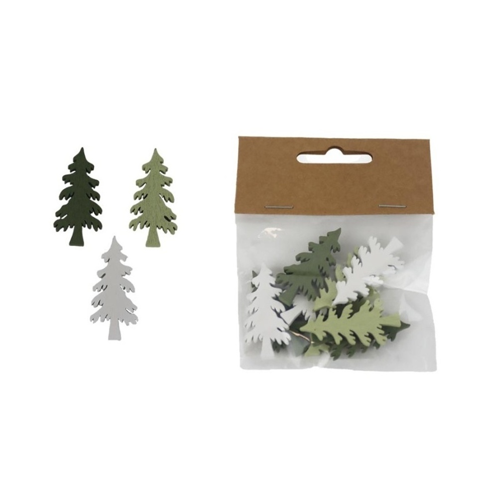 Přízdoba strom dřevěný bílý/zelený mix 9ks