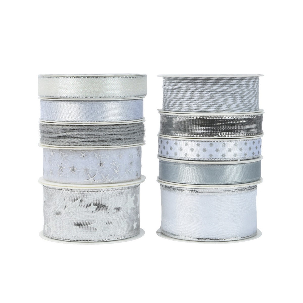 Stuha vánoční s drátkem bílá/stříbrná mix 2-40mm x 2-4m