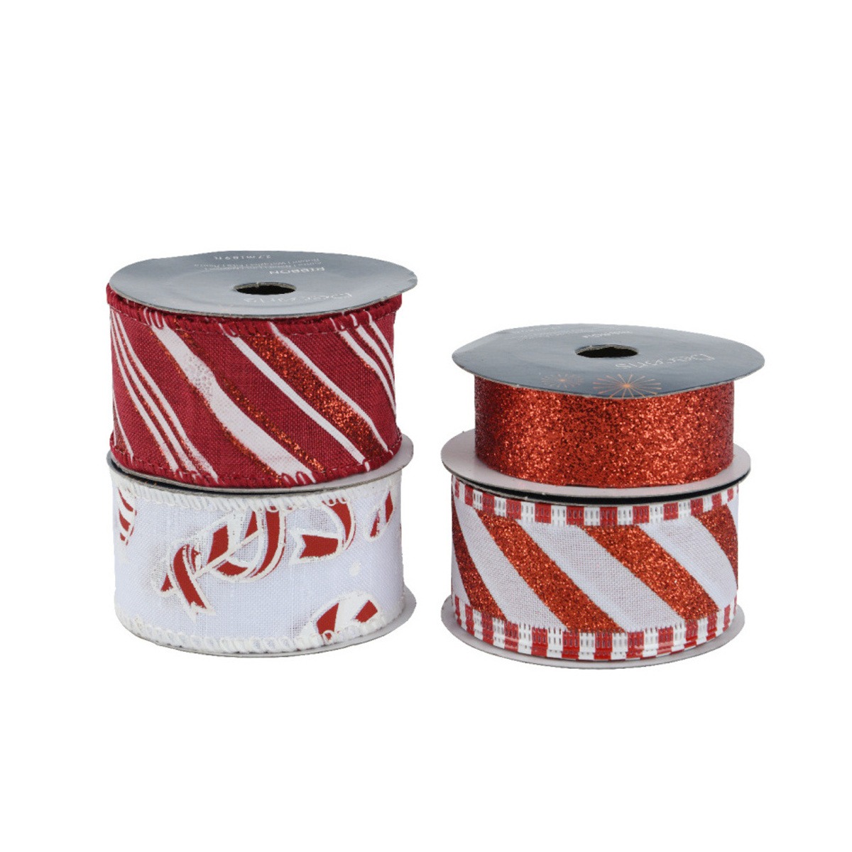 Stuha vánoční s drátkem bílo-červená mix 25-40mm x 3-5m