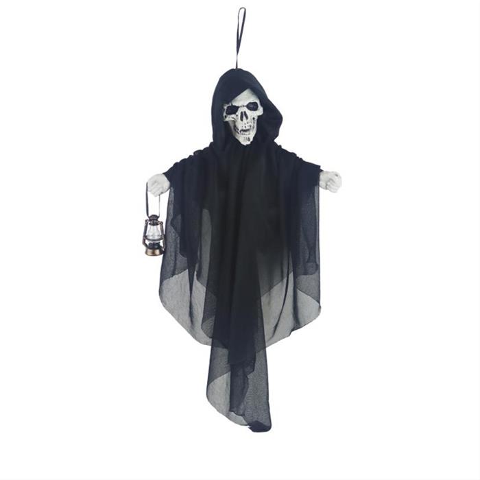Smrtka s lucernou plastová závěsná bílo-černá 50cm