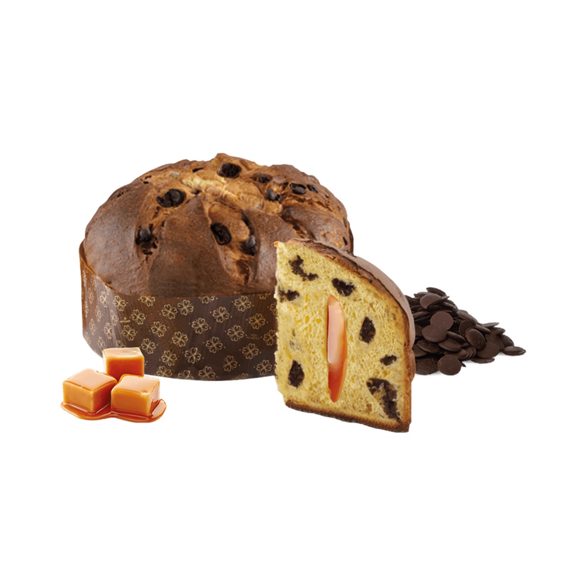 Italský panettone s hořkou čokoládou a slaným karamelem které je vhodné pro všechny kdo milují kontrast chutí!. Nadýchané a jemné těsto s kousky hořké čokolády a delikátním slaným karamelem, který dodává dezertu sofistikovanou chuťovou rovnováhu.