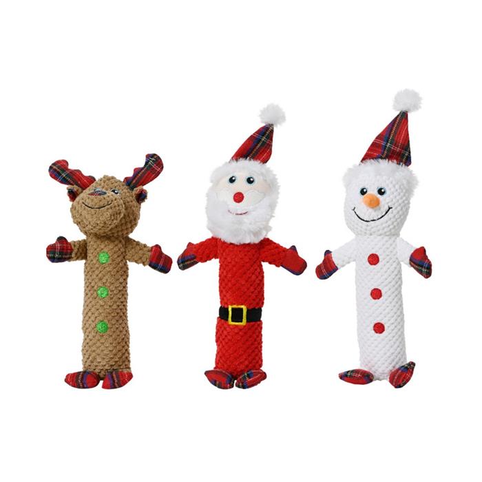 Zábavná vánoční hračka pro psy v podobě Santy, sněhuláka nebo soba potěší každého čtyřnohého mazlíčka. Díky měkkému polyesterovému materiálu je příjemná na kousání i nošení, a zároveň odolná pro delší hraní.