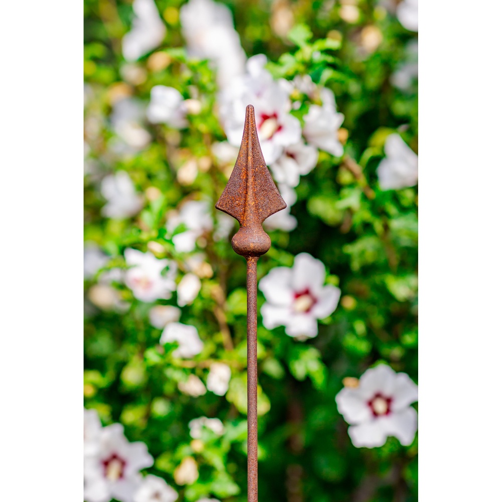 Kovový zápich do zahrady. Úprava materiálu: před lakováním povrchu probíhá tryskání ocelových broků a automatické odmaštění/fosfátování, poté lakování v práškové lakovně a následně vypalování při cca 200 °C po dobu cca 20 minut. Výsledkem je hladká, antikorozní barva a celoroční užívání na zahradě.