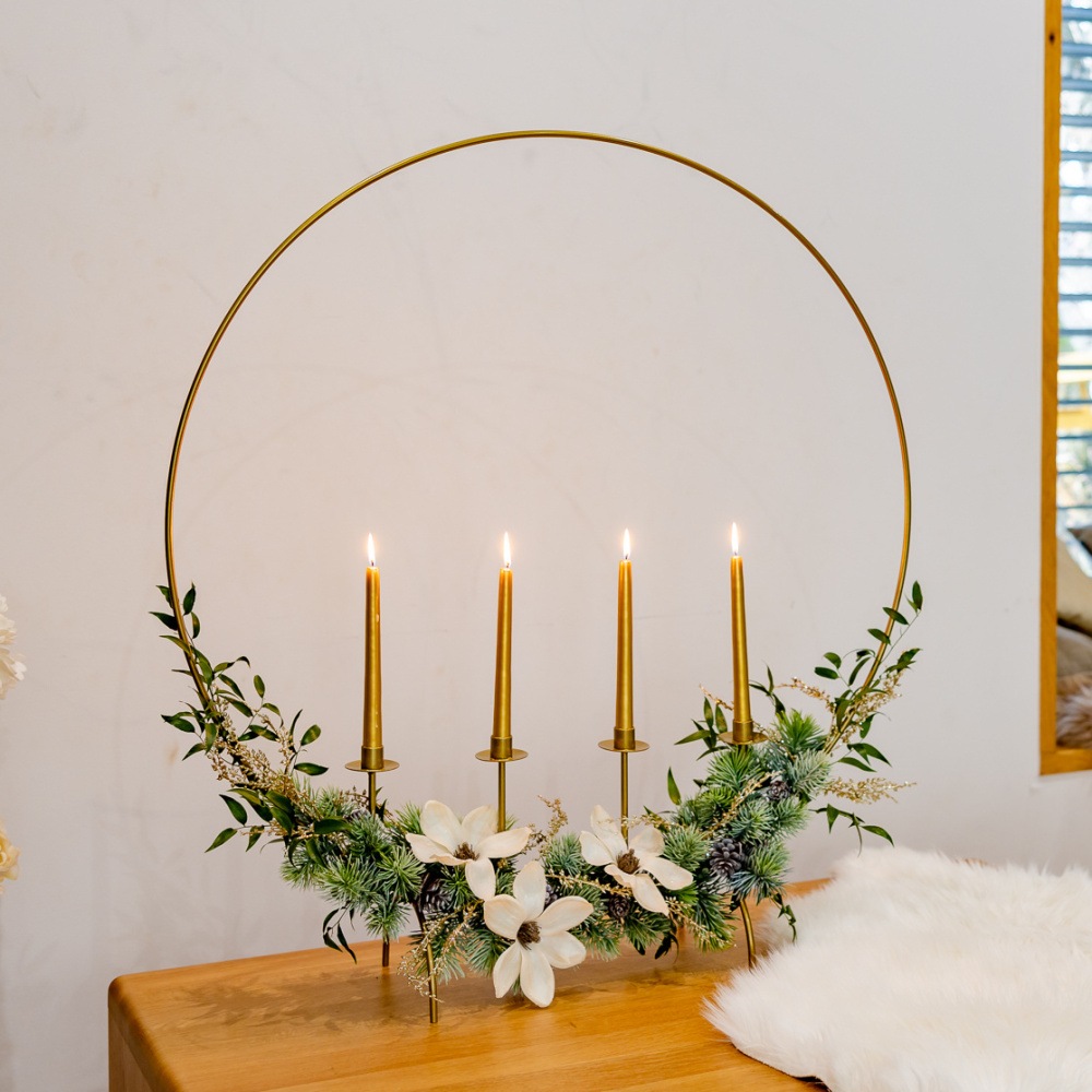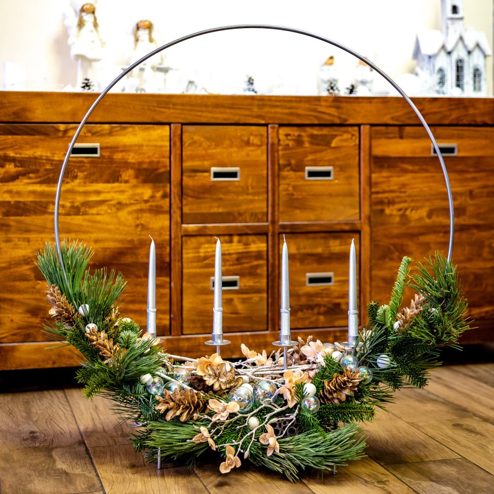 Kovový svícen. Úprava materiálu: před lakováním povrchu probíhá tryskání ocelových broků a automatické odmaštění/fosfátování, poté lakování v práškové lakovně a následně vypalování při cca 200 °C po dobu cca 20 minut. Výsledkem je hladká, antikorozní barva.