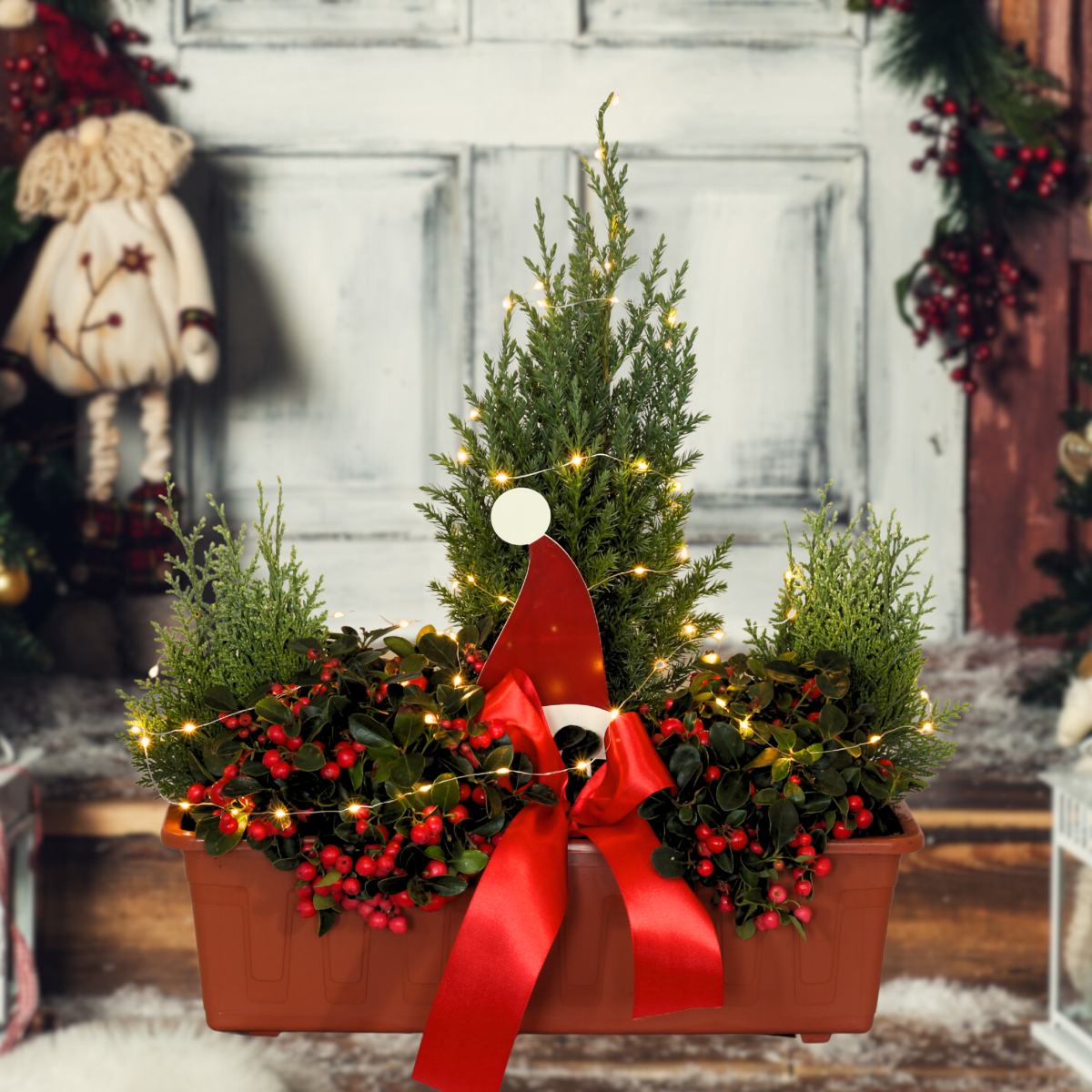 Vánoční Truhlík s rostlinami 50cm
