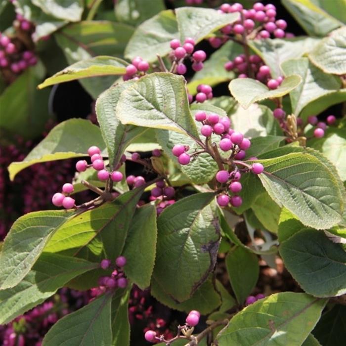 Atraktivní středně vysoký keř, který dosahuje výšky 1-3m a šířky 1-2m. Listy jsou sytě zelené, podlouhle vejčité a na jaře raší bronzově. Květy jsou drobné a nenápadné. Na podzim se objevují atraktivní zářivě fialové bobulky, které jsou lesklé. Plodí hojně a rostlinu zdobí od začátku pod zimu až do jara.
