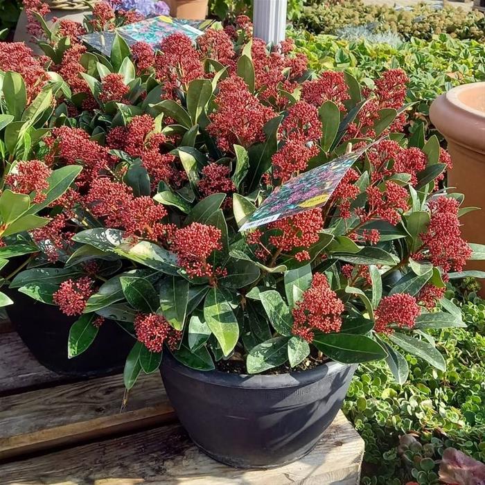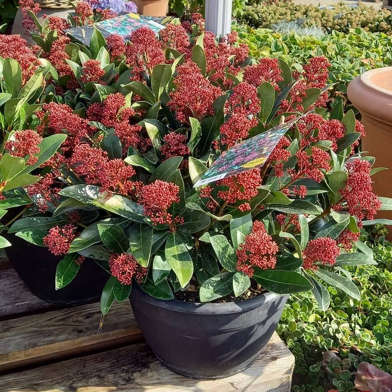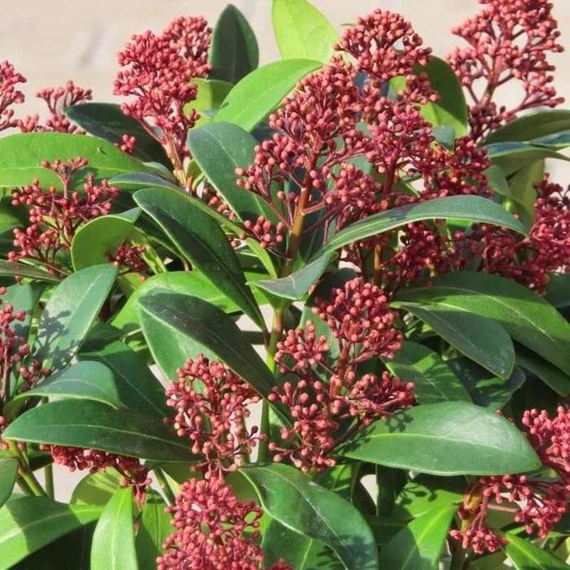 Nízký stálezelený keřík původem z Japonska. Tento kultivar dorůstá výšky do 60cm a šířky do 80cm a vyznačuje se větším květenstvím krémově bílých květů, které jsou vonné. Na podzim se na rostlině tvoří poupata vínové barvy, které jsou na rostlině přes zimu. Listy jsou tmavě zelené, obvejčité a lesklé.